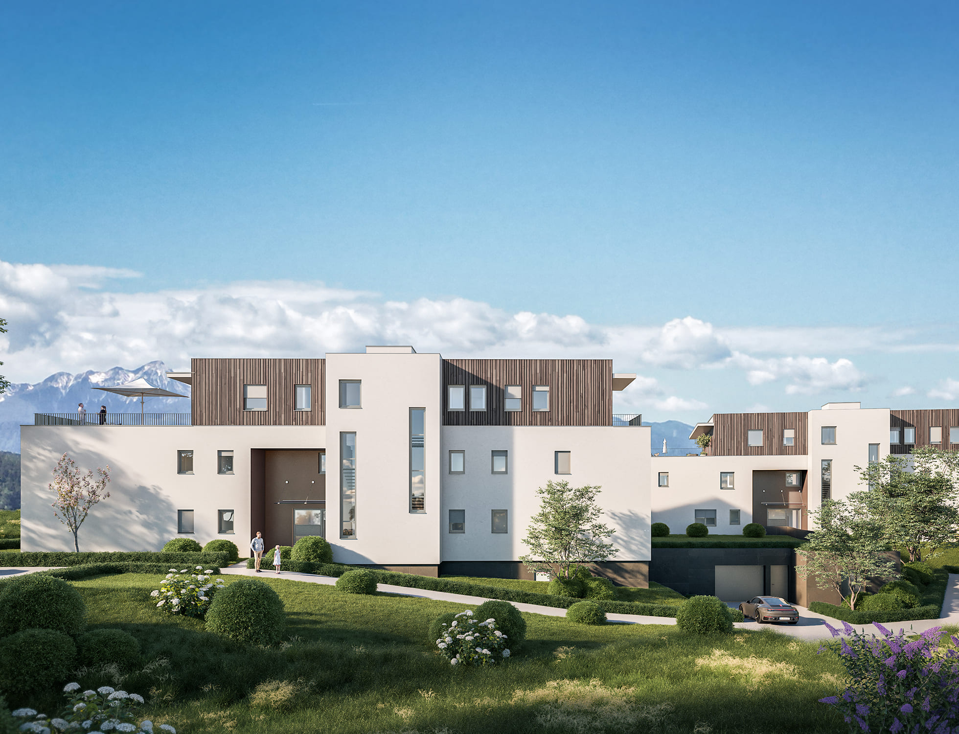 • Großzügige Terrassen und Gärten